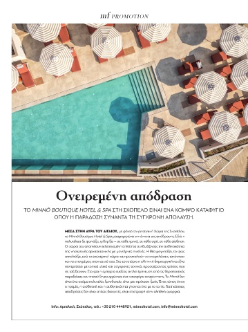 Info: Αμπελική, Σκόπελος, τηλ.: +30 210 4448921, minnohotel.com, info@minnohotel.com