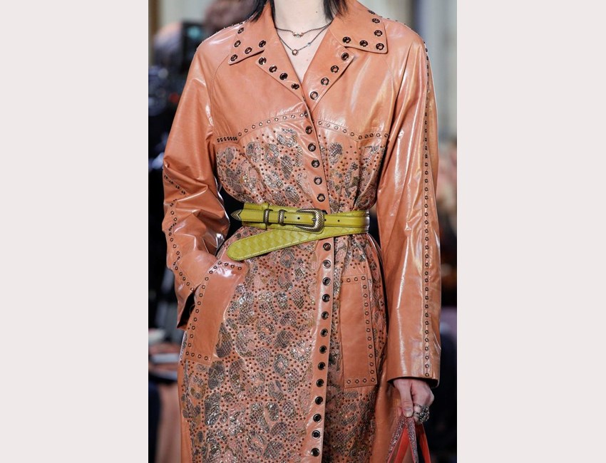 H ultra chic lime ζώνη στο show του Bottega Veneta