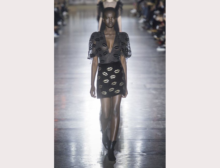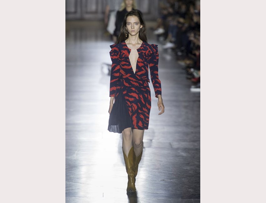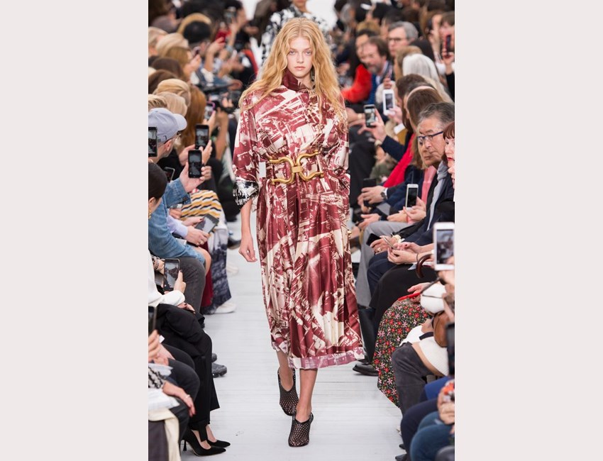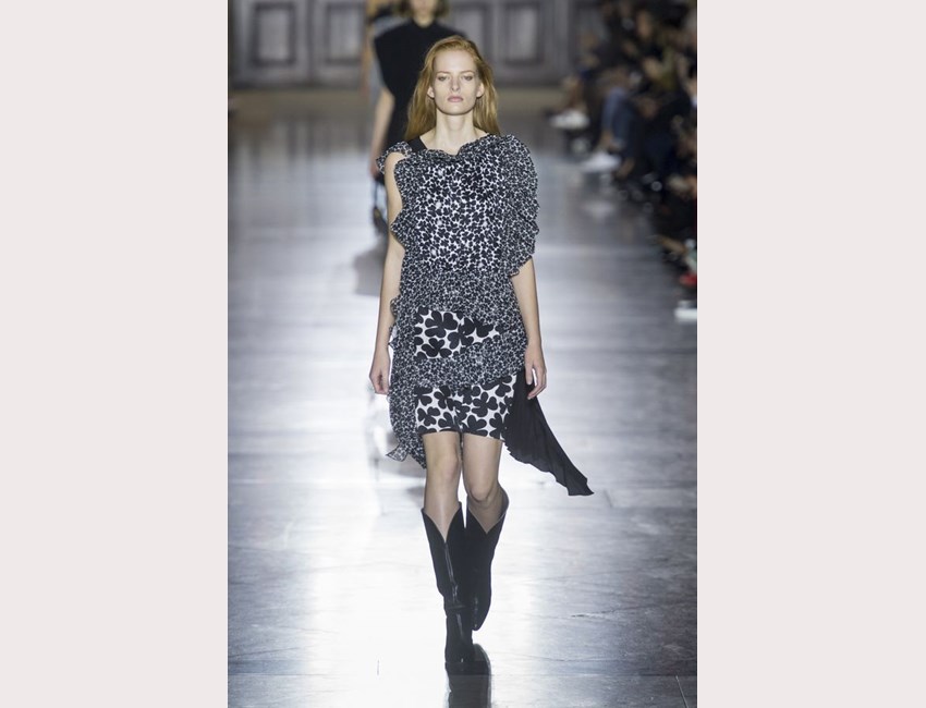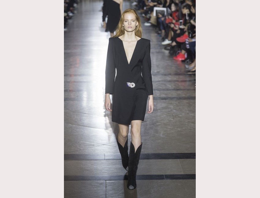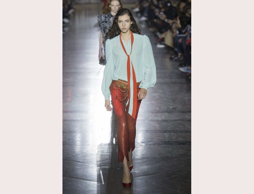 Το έργο της Clare Waight Keller ως νέας καλλιτεχνικής διευθύντριας του Givenchy δεν ήταν εύκολο, δεδομένης της ισχυρής δημιουργικής σφραγίδας που άφησε στον οίκο ο προκάτοχός της, Riccardo Tisci. Η ίδια δήλωσε ότι ανέτρεξε στα αρχεία του θρυλικού Hubert de Givenchy (και ιδρυτή του οίκου) και "κράτησε" την εμμονή του στους ώμους και τα graphic prints. Άνοιξε το show με μια double-breasted καμπαρντίνα σε σκούρο μπλε και συνέχισε με φορέματα -άλλοτε αιθέρια, άλλοτε πιο "βαριά"- με διάφορα χρώματα και prints. Η παλέτα της κινήθηκε μεταξύ του μπλε, του λευκού και του μαύρου με εξαιρετικά ενδιαφέροντα "διαλείμματα" για κομμάτια σε έντονο κόκκινο και mint και οι μπότες της με V σχήμα στην κορυφή και ασημένια επένδυση στο μπροστινό μέρος έκλεψαν τις εντυπώσεις. Ο απόλυτος πρωταγωνιστής, παρέμεινε το φόρεμα στις διάφορες εκδοχές του- ιδιαίτερα οι βραδινές δημιουργίες της Keller που θα μπορούσες να φανταστείς στο red carpet αλλά και σε ένα πιο elevated cocktail πάρτυ.