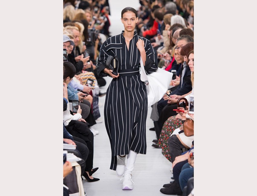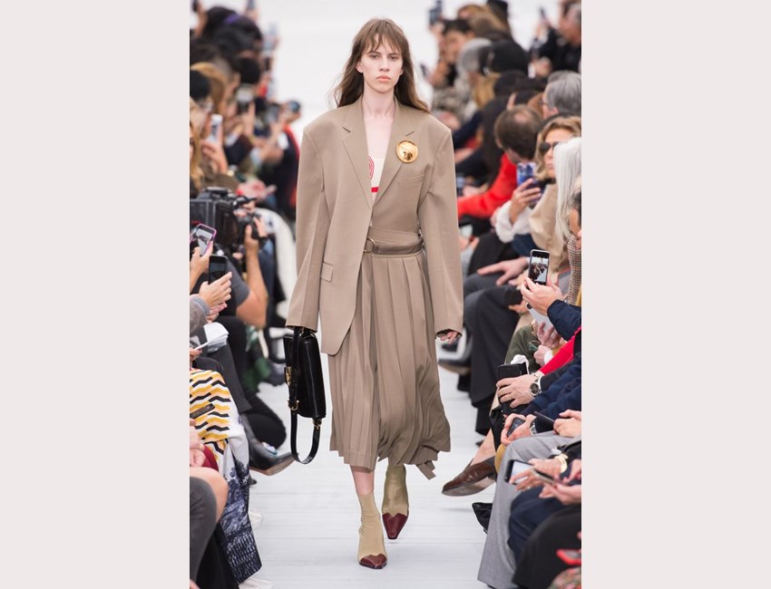 Η Phoebe Philo βρίσκεται στο "τιμόνι" του οίκου Celine εδώ και αρκετά χρόνια- δείχνει να γνωρίζει άψογα το αντικείμενο και το κοινό της. Για την συλλογή της Άνοιξη/Καλοκαίρι 2018, η Philo ανέτρεξε στην πρωτόλεια μορφή του οίκου, πριν ακόμη συνδεθεί με μία από τις μεγαλύτερες δυνάμεις της γαλλικής μόδας. Άντλησε έμπνευση από designers των '70s και των '80s και εμφύσησε τη συλλογή με έναν αέρα αισιοδοξίας και αγάπης (για τη μόδα, τους ανθρώπους, την ίδια τη ζωή). Oversized κοστούμια, σακάκια και καμπαρντίνες, τονισμένοι ώμοι με βάτες, midi φούστες με πιέτες, τσάντες από μαλακό δέρμα που μπορούν να κρατηθούν και σαν clutch, ασυνήθιστα prints, ένα μαύρο παλτό με γαλιάζιο κέντημα (!), φορέματα με κρόσια και anoraks συνέθεταν μια συλλογή-φόρο τιμής στα '80s και στην άνεση και την πρακτικότητα που αναζητά η σύγχρονη γυναίκα χωρίς να χάνει το στυλ της.