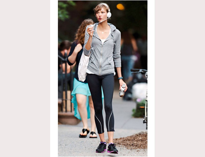 Κολάν που αναδεικνύει τα καλλίγραμμα πόδια της και μεγάλα ακουστικά για την Karlie Kloss.