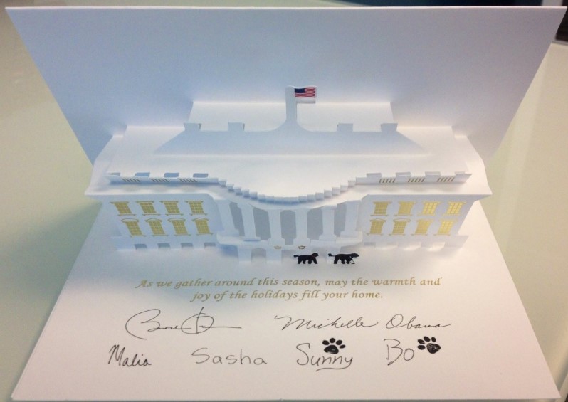 Παρ΄ ότι πλέον οι ευχές στέλνονται κυρίως διαδικτυακά, ο Λευκός Οίκος εξακολουθεί να διατηρεί τα ήθη και τα έθιμά του και η Πρώτη Οικογένεια να στέλνει τα "Χρόνια πολλά" σε γνωστούς, φίλους και υποστηρικτές μέσα από την κλασική χριστουγεννιάτικη κάρτα. Κάπως έτσι και φέτος η οικογένεια Obama διατηρεί μια την παράδοση αυτή που μετρά πλέον 90 χρόνια.