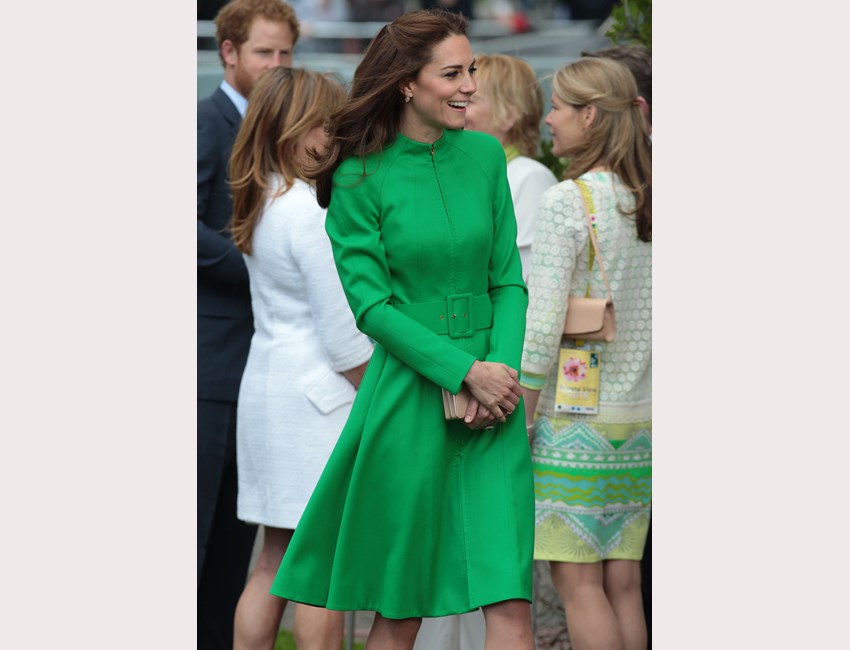 Το πράσινο, Catherine Walker παλτό αξίας $3.710 που φόρεσε τον Μάιο στο Chelsea.