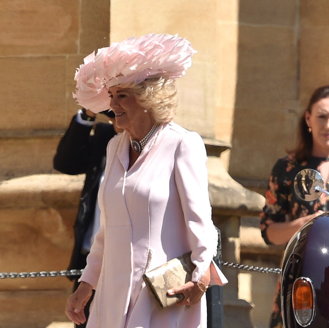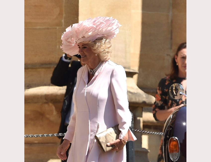 Η Δούκισσα της Κορνουάλης επέλεξε ένα καπέλο σε ροζ απόχρωση διακοσμημένο με φτερά.