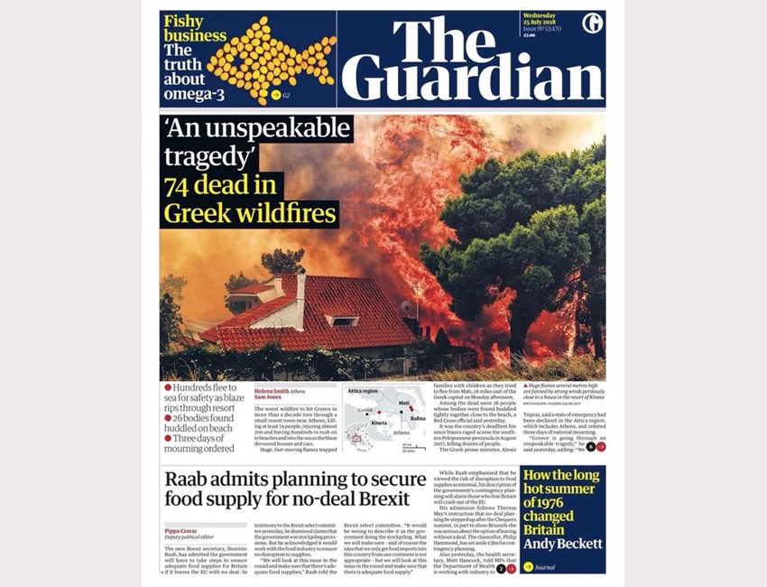 Στο επίκεντρο του παγκόσμιου ενδιαφέροντος βρέθηκε η εθνική τραγωδία της χώρας μας, με τα διεθνή ΜΜΕ να στρέφουν το βλέμμα τους στις τεράστιες καταστροφές και στα θύματα που άφησαν πίσω τους οι πυρκαγιές που έπληξαν την Ανατολική Αττική.