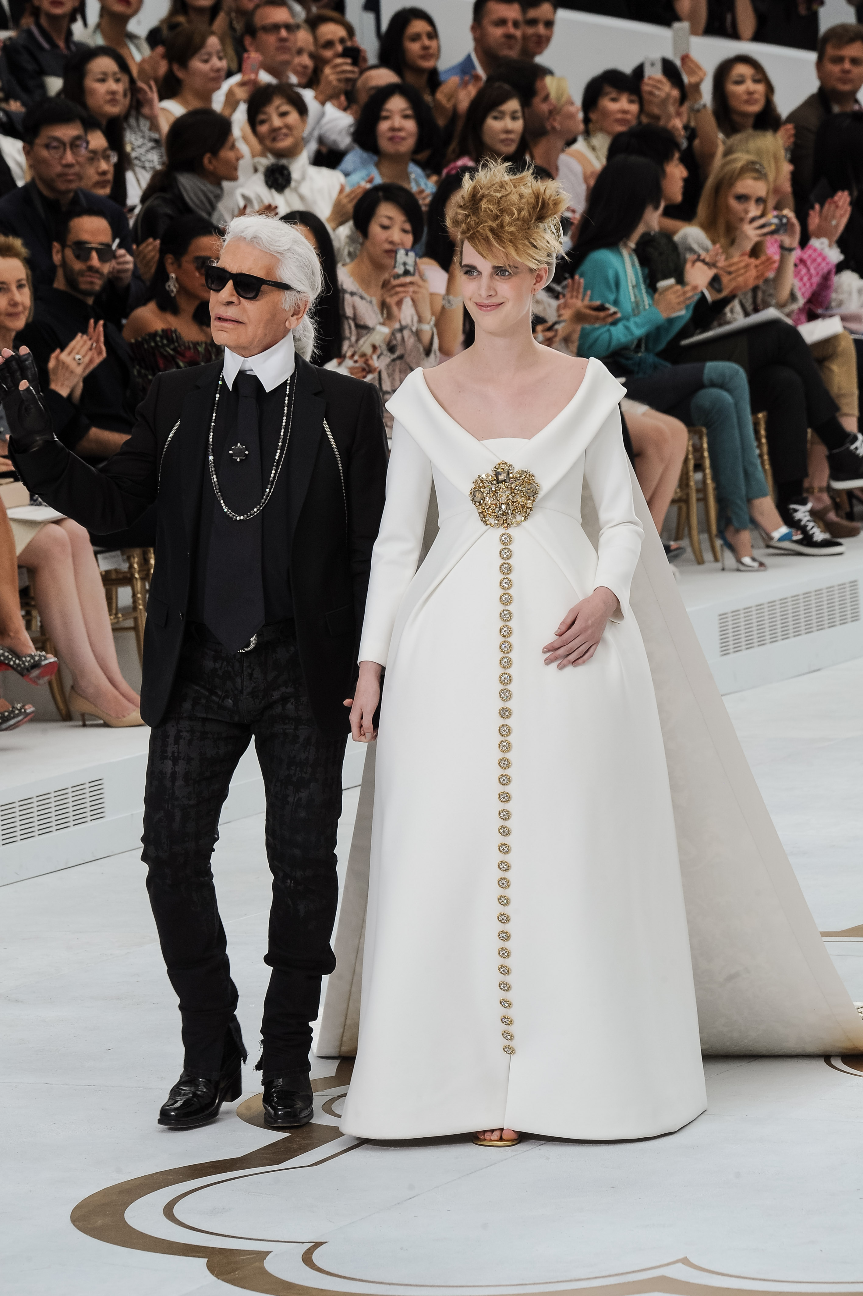 Κλείνοντας την επίδειξη του οίκου Chanel στην Paris Haute Couture Fashion Week FW14/15, ο Karl Lagerfeld αποφάσισε να βγει κρατώντας από το χέρι την Ashleigh Good που ήταν έγκυος.