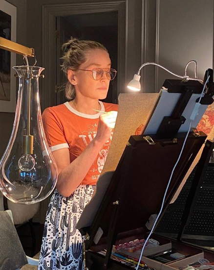 Η Sharon Stone εξασκεί το ταλέντο της στη ζωγραφική.