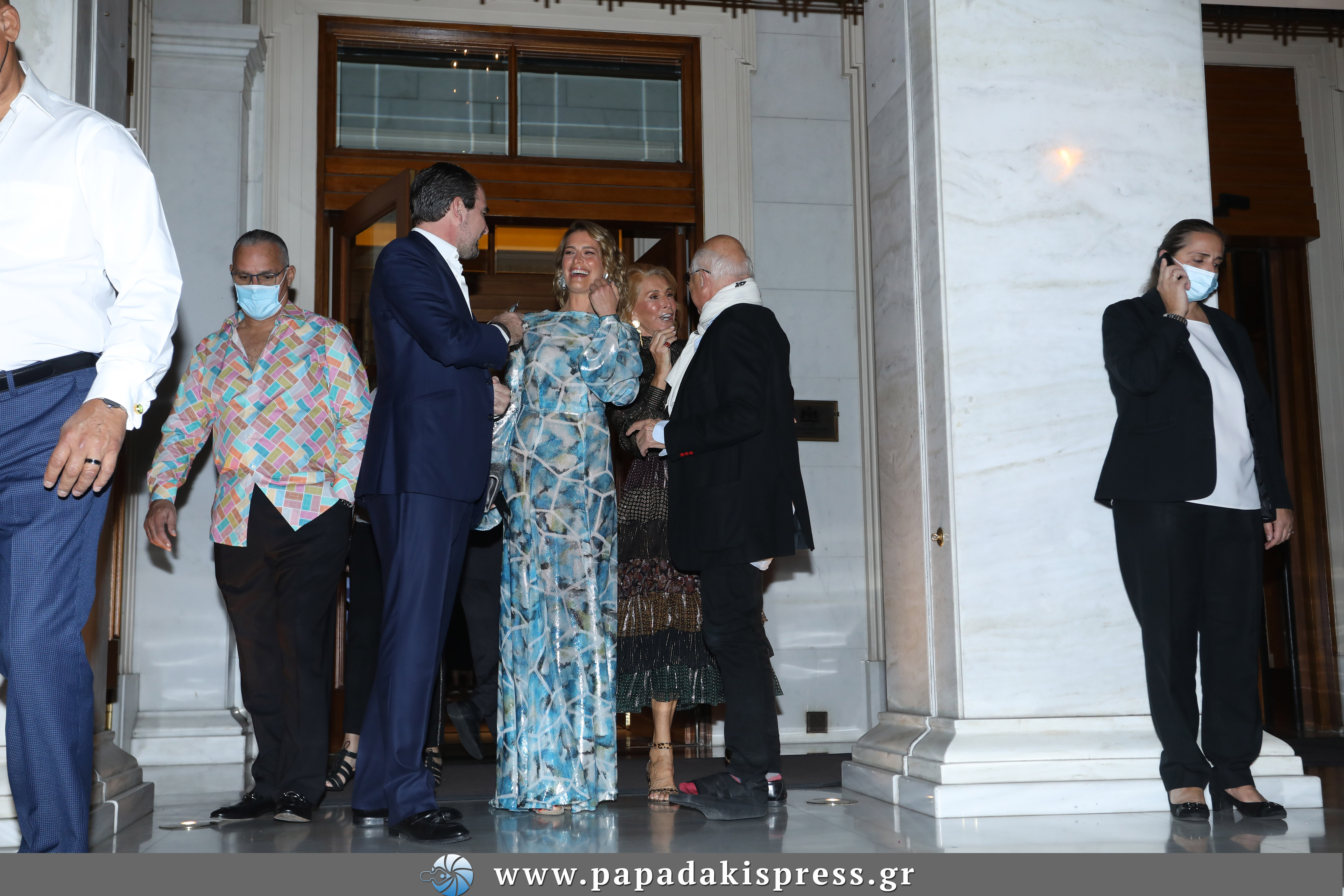 Η οικογένεια εξήλθε του ξενοδοχείου Μεγάλη Βρεταννία όπου και διαμένουν και κατευθύνθηκαν προς το venue του πάρτι, όπου γιόρτασαν το ζευγάρι. Η Nina Flohr, η κόρη του δισεκατομμυριούχου, Thomas Flohr, εμφανίστηκε με ένα εντυπωσιακό Chanel φόρεμα που μας θύμισε αρκετά τη νυφική εμφάνιση της πριγκίπισσας Diana, στην πιο σύγχρονη εκδοχή της φυσικά.