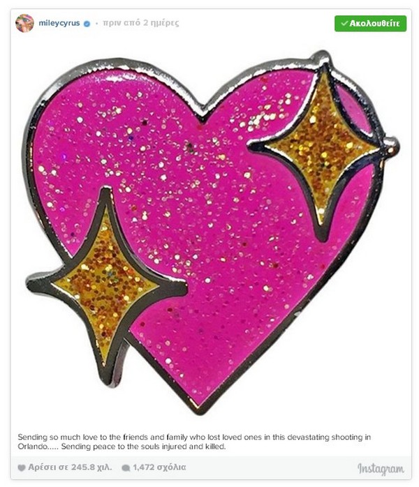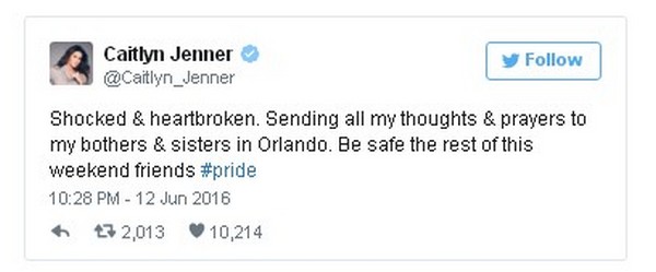 Η υποστήριξη των celebrities ωστόσο δεν περιορίστηκε στα social media. Τη στιγμή που ολόκληρος ο πλανήτης θρηνούσε για τα αδικοχαμένα θύματα, στη Νέα Υόρκη πραγματοποιούνταν τα Tony Awards, θεατρικά βραβεία του Broadway. Όταν ο Lin-Manuel Miranda ανέβηκε επί σκηνής για να παραλάβει το βραβείο του, απέτισε φόρο τιμής στα θύματα αλλά και έδωσε έναν συγκινητικό λόγο για την αγάπη που χειροκροτήθηκε θερμά. «H αγάπη είναι αγάπη είναι αγάπη είναι αγάπη είναι αγάπη είναι αγάπη είναι αγάπη είναι αγάπη και δεν μπορεί να δολοφονηθεί, ούτε να αγνοηθεί... Τώρα γεμίστε τον κόσμο με μουσική, αγάπη και υπερηφάνεια», ανέφερε μεταξύ άλλων.