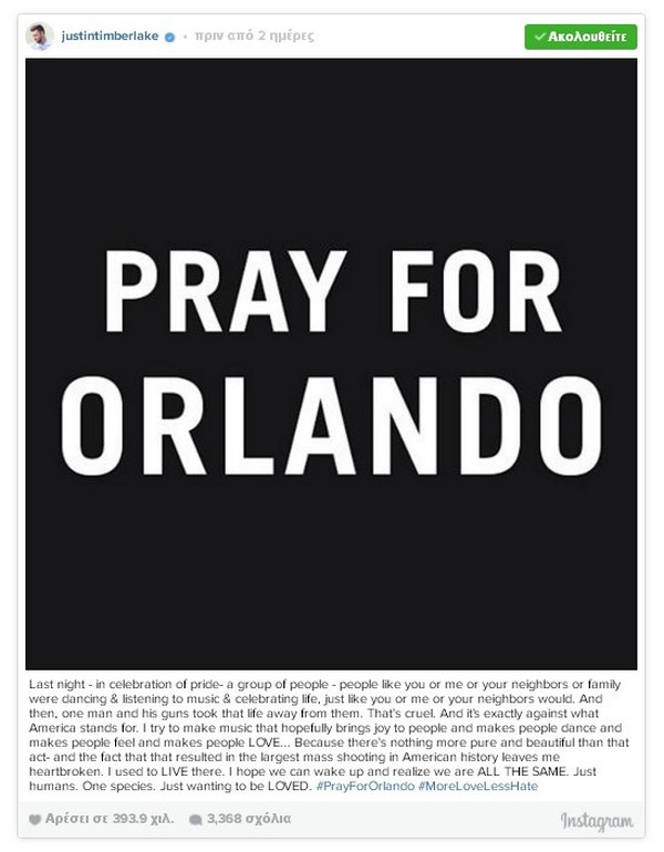 #PrayForOrlando: Οι celebrities στέλνουν τα δικά τους μηνύματα για την τραγωδία