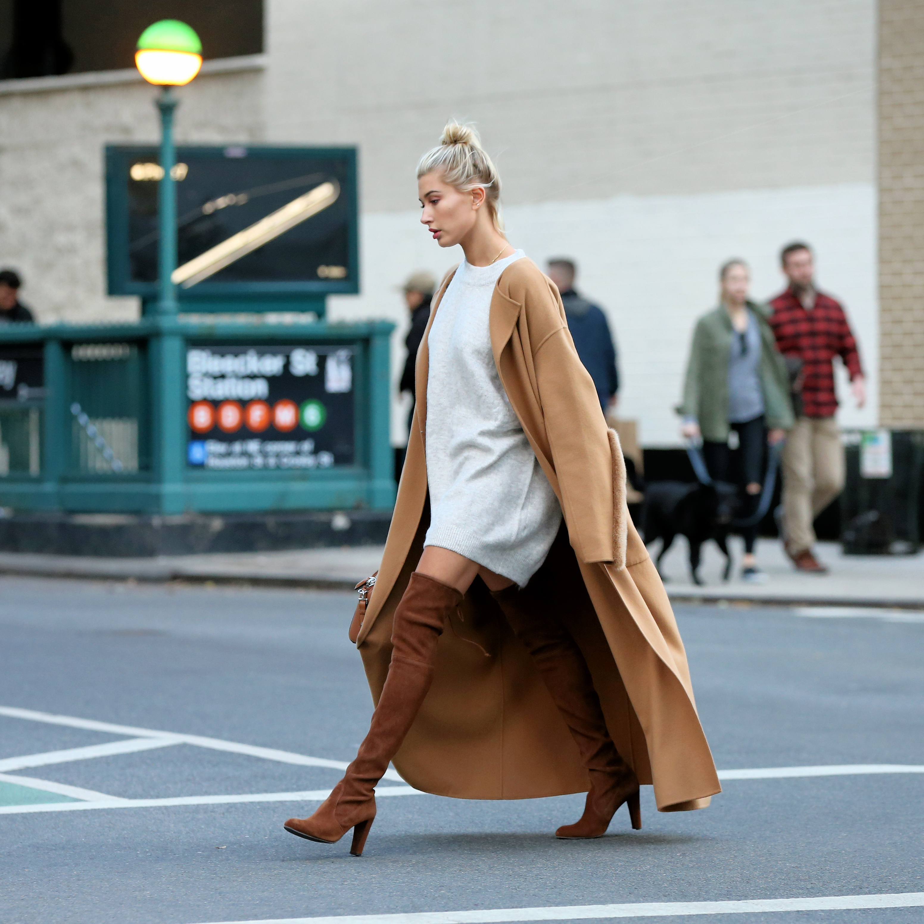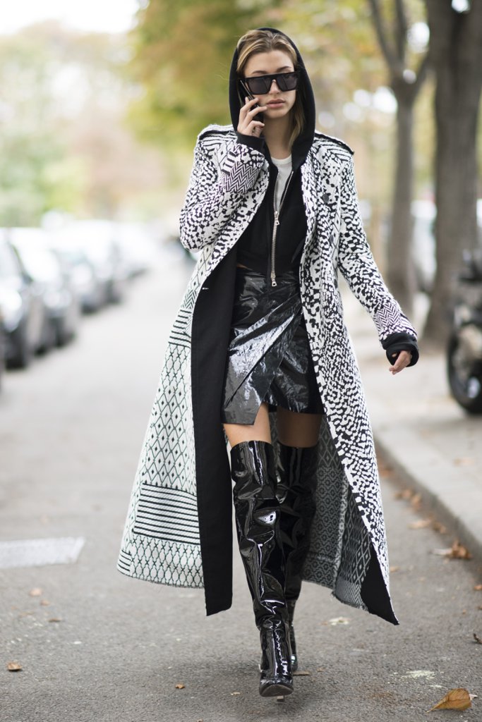 Τα παλτό φαίνεται πως είναι το απόλυτο φετίχ της Hailey, καθώς πέρα απ᾽όλα τα άλλα, έχει τολμήσει να μετατρέψει μία μίνι καμπαρντίνα, σε ένα ultra stylish φόρεμα.