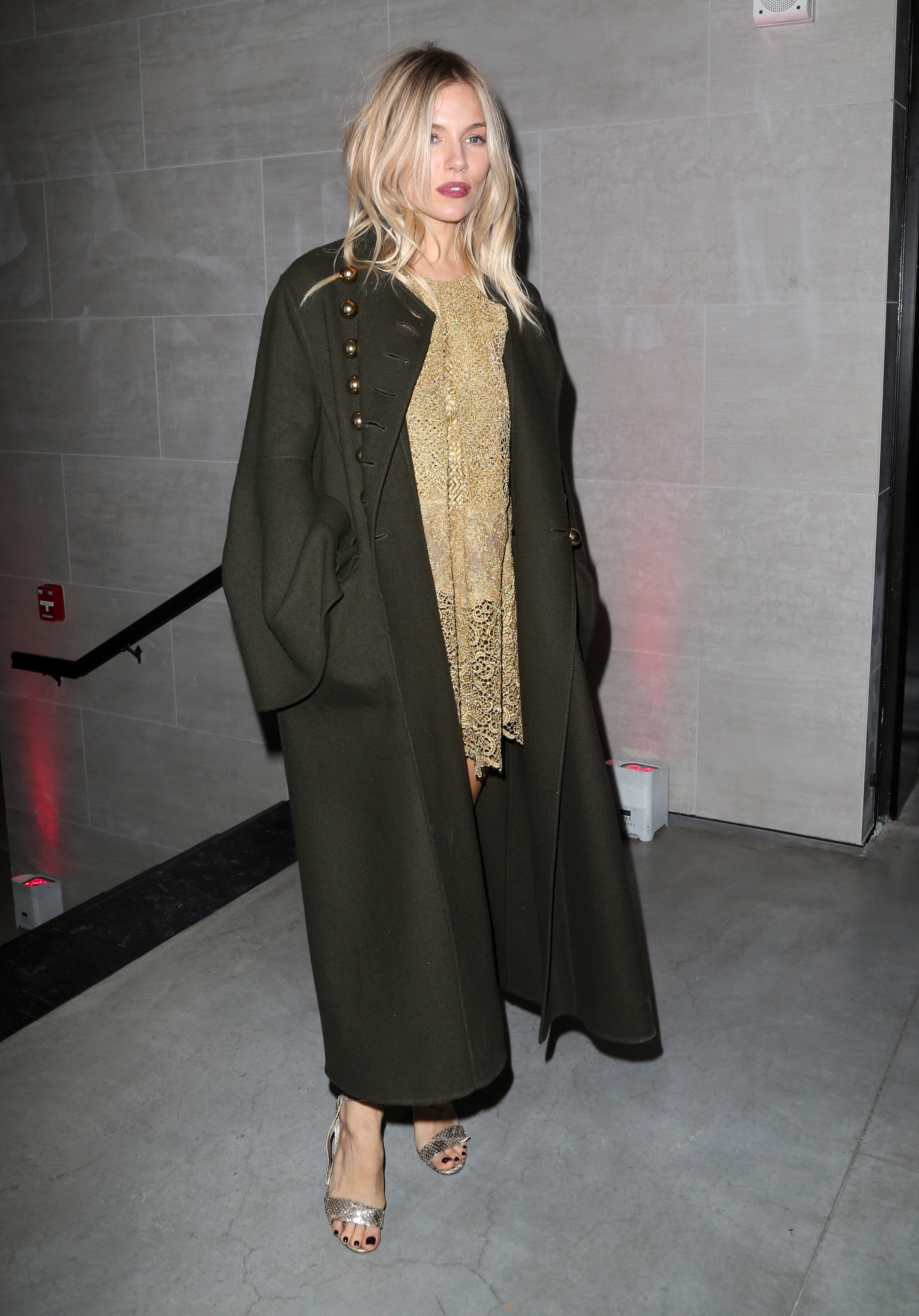 H Sienna Miller στο κόκκινο χαλί της ταινίας 'Letters To Andy Warhol' με φόρεμα και παλτό Burberry.