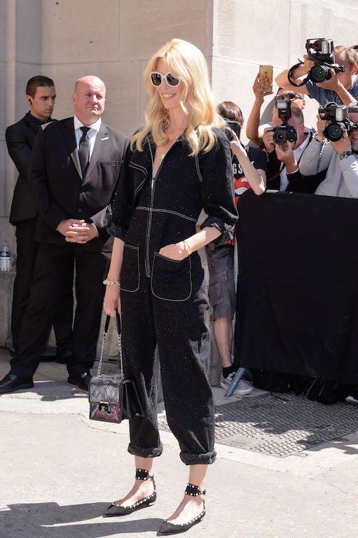 Οι ιέρειες της γαλλικής μόδας, Caroline de Maigret και Inès de la Fressange, ήταν φυσικά από τις πρώτες που έφτασαν στο Grand Palais και τράβηξαν όλα τα βλέμματα. Όμως ανάμεσα τους βρέθηκε και η πάντα κομψή Claudia Schiffer φορώντας μία μίνιμαλ μαύρη ολόσωμη φίρμα με λευκές λεπτόμερειες.