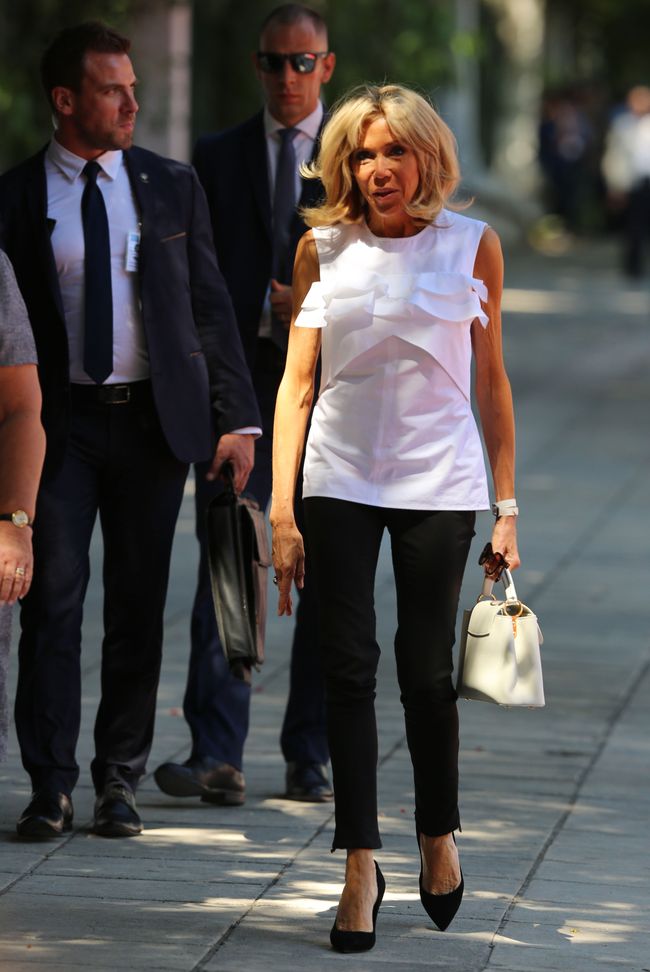 Εκείνο που κάνει το στυλ της Brigitte Macron να ξεχωρίζει, είναι τα μηνύματα που περνά σε παραπάνω από ένα επίπεδα. Το πρώτο, είναι το ότι δεν ντύνεται "σύμφωνα με την ηλικία της". Αν μέχρι τώρα η κοινή γνώμη δεν είχε ακριβώς συνηθίσει στη θέα μιας 64χρονης γυναίκας με 39χρονο σύντροφο, τώρα πρέπει να προσαρμοστεί και στη θέα της ίδιας γυναίκας με skinny jeans, δερμάτινα παντελόνια και μίνι φορέματα. Και (φαίνεται να) προσαρμόζεται εύκολα, γιατί η Macron δείχνει απλώς υπέροχη.