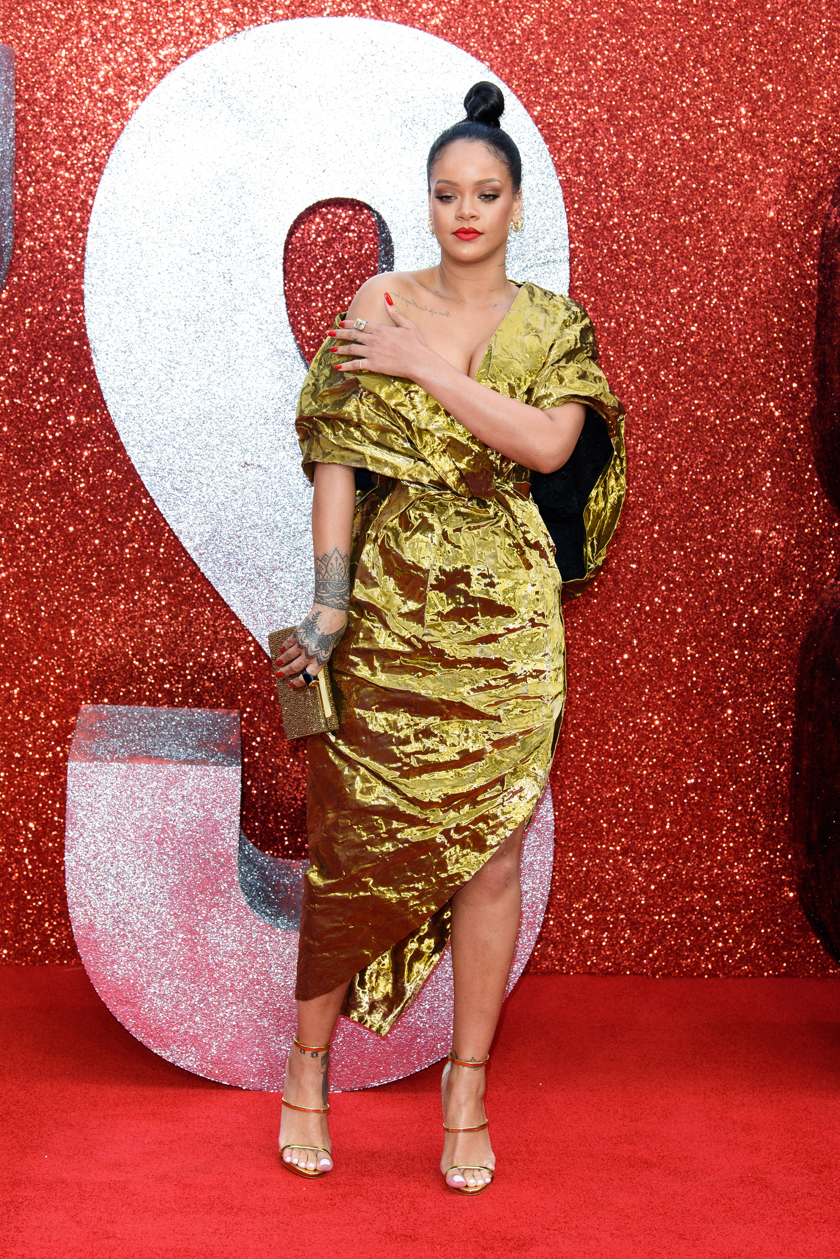 Στην επίσημη πρεμιέρα του Ocean's 8 στο Λονδίνο με χρυσό φόρεμα του οίκου Poiret.