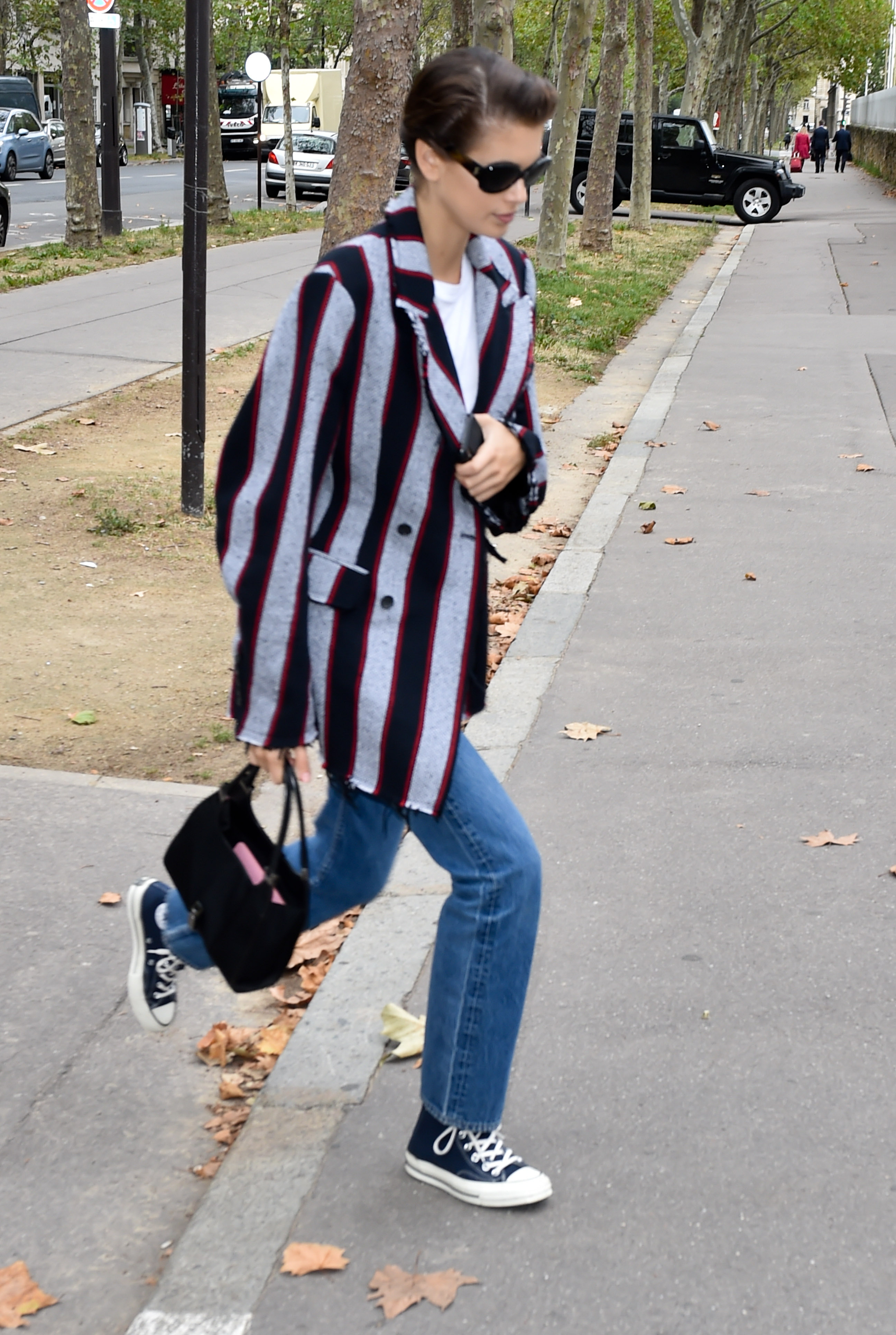 Με καρό ή ριγέ μοτίβο, βελούδινο ή leather, αυτό το διαχρονικό κομμάτι γίνεται ο πρωταγωνιστής σε κάθε της εμφάνιση. Η ίδια το συνδυάζει κυρίως με basic tops και jeans ωστόσο τα πιο oversized τα φοράει και ως φόρεμα. Ένα ζευγάρι κλασικά All Star μποτάκια ή πέδιλα με λεπτά λουράκια ολοκληρώνουν τα looks της. Αν αναζητάς ιδέες για το πώς να φορέσεις το σακάκι η Kaia Gerber είναι πλέον η πιο κατάλληλη.