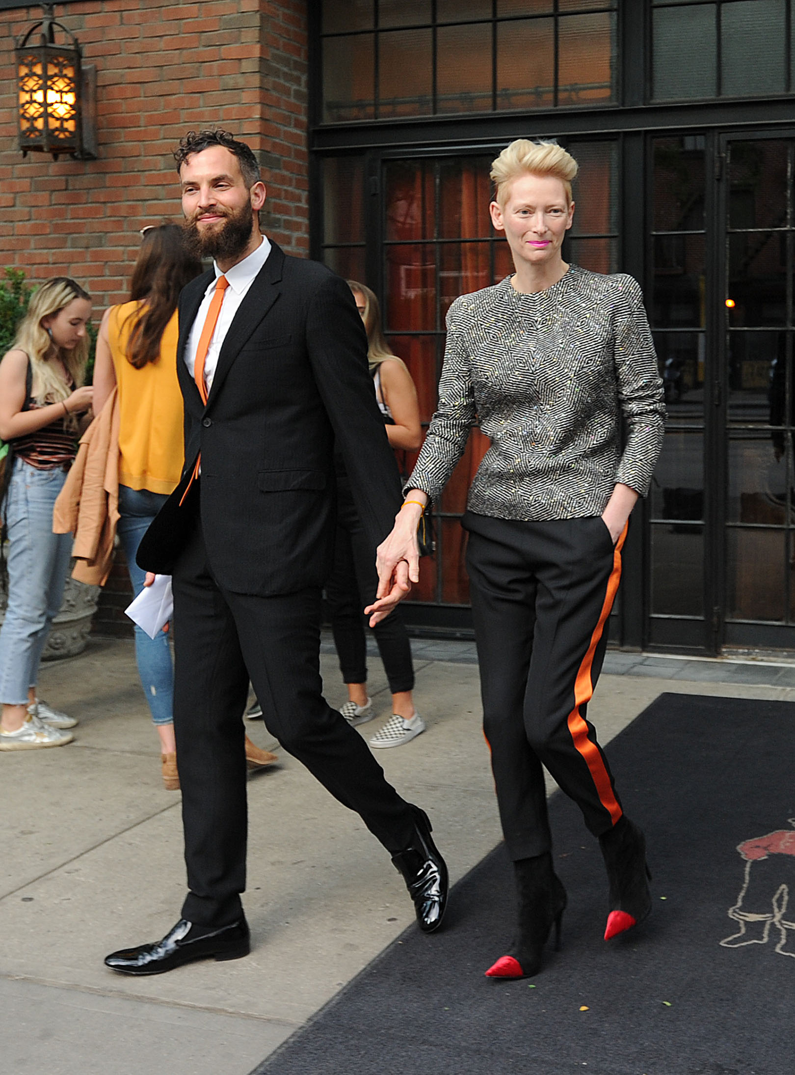 Εκτός όμως από δυνατές ερμηνείες η Tilda Swinton έχει προσφέρει τις πιο avant garde, ιδιαίτερες και cool εμφανίσεις στο κόκκινο χαλί των μεγαλύτερων κινηματογραφικών φεστιβάλ. Αρχιτεκτονικές γραμμές, μινιμαλισμός, αυστηρό tailoring και μία αρκετή δόση έντονου χρώματος (όπως για παράδειγμα η statement φούξια παντελόνα Schiaparelli) είναι τα κύρια στοιχεία που χαρακτηρίζουν το στυλ της. Ο Haider Ackermann παραμένει εδώ και χρόνια ο αγαπημένος της σχεδιαστής ο οποίος βρίσκεται σχεδόν πίσω από κάθε της look ενώ οίκοι όπως Chanel, Dior, Lanvin και Jil Sander είναι ανάμεσα στις σταθερές επιλογές της.