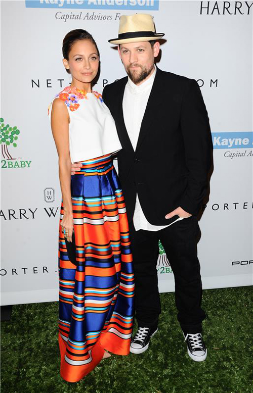 Η Nicole Richie, φορώντας Alberta Ferretti, στο πλευρό του συζύγου της Joel Madden.