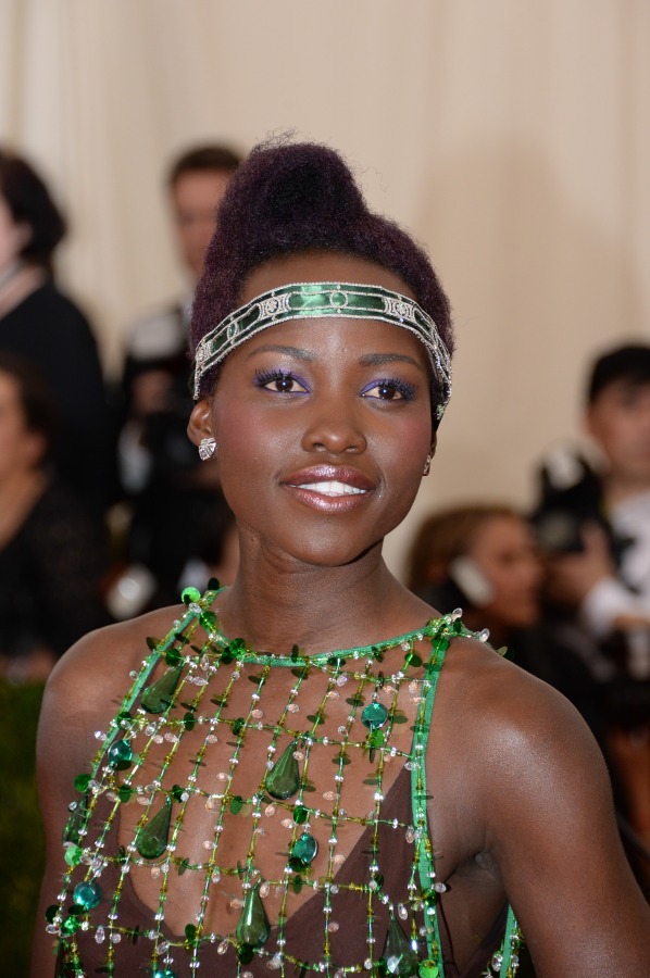 H Lupita Nyong’o τόνισε τα μάτια της με μωβ eyeliner, ενώ ολοκλήρωσε την εμφάνισή της με ένα εντυπωσιακό πράσινο headband στα μάλλια.