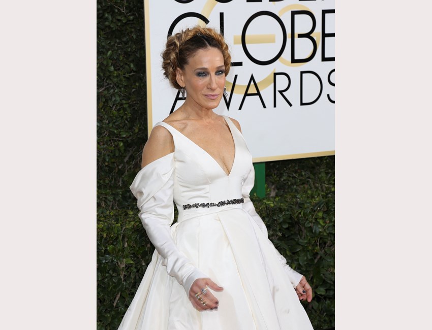 Η Sarah Jessica Parker εντυπωσίασε όχι μόνο με την grande λευκή τουαλέτα της, αλλά με το statement χτένισμα της, με δύο πλεξούδες που ενώνονταν στην κορυφή του κεφαλιού.
