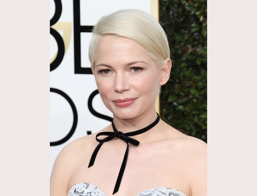 Η Michelle Williams επέλεξε λευκό φόρεμα Louis Vuitton και το συνδύασε με ένα εντυπωσιακό και girlie τσόκερ με μαύρο φιόγκο.