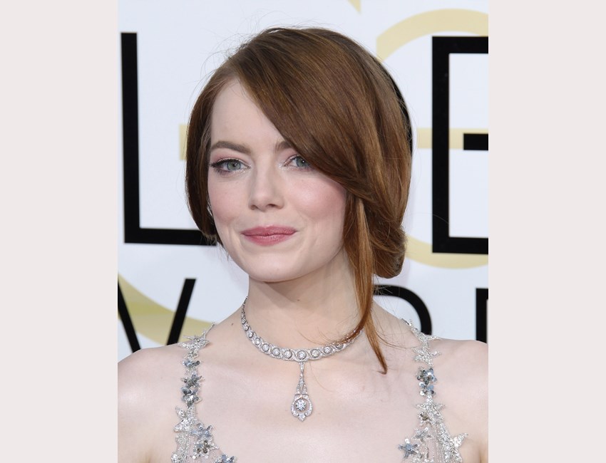 Η Emma Stone επέλεξε nude τόνους, με ένα φόρεμα Valentino και κοσμήματα Tiffany.