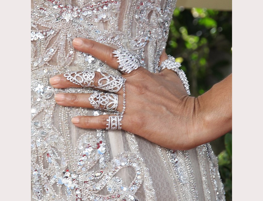 Η Tracy Ellis Ross άφησε τα κοσμήματά της να κάνουν όλη τη δουλειά, φορώντας διαμαντένια δαχτυλίδια σε κάθε δάχτυλο.