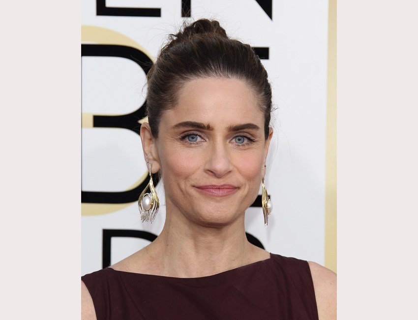 Η Amanda Peet φόρεσε μια τουαλέτα στο χρώμα του κρασιού και τη συνδύασε με εντυπωσιακά σκουλαρίκια.
