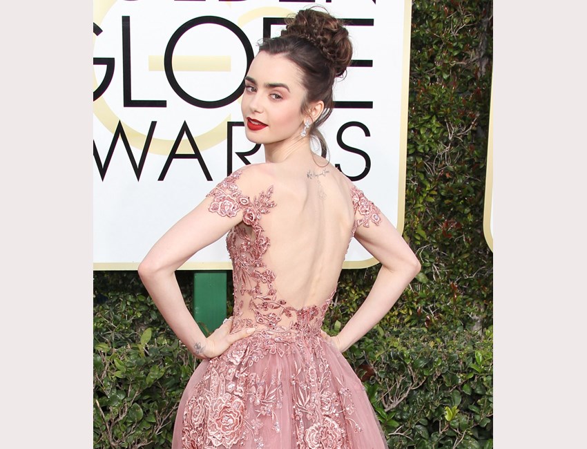Το ιδιαίτερο updo χτένισμα της Lily Collins με τις πλεξούδες, έκανε τη διαφορά.