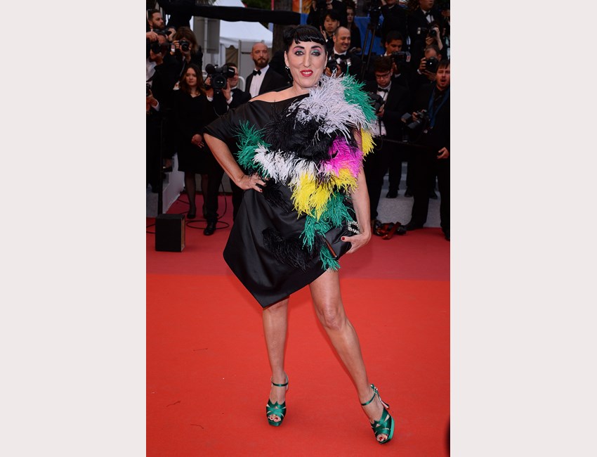 Η Rossy de Palma με μαύρο φόρεμα με πολύχρωμα φτερά