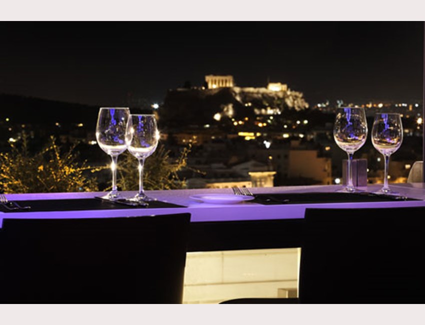 Το πολυβραβευμένο Premiere στρώνει τα τραπέζια του με κεριά και τριαντάφυλλα και σερβίρει ένα εξαιρετικό μενού 5 πιάτων, καθώς και από ένα ποτήρι σαμπάνια για εσένα και τον αγαπημένο σου, που θα το απολαύσετε ακούγοντας live μουσική και ρεμβάζοντας τη θέα της Ακρόπολης.
