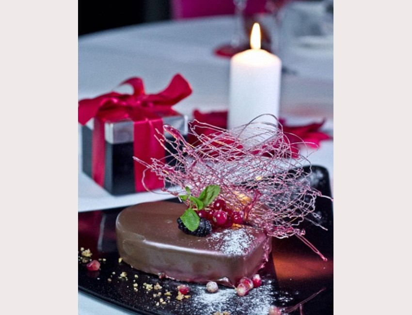 Καρδιά σοκολάτας Valrhona Καραϊβικής με σάλτσα framboise