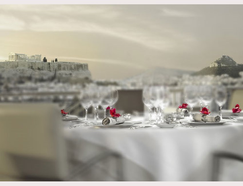 Στο «Le Grand Balcon» στον τελευταίο όροφο του ξενοδοχείου με την πανοραμική θέα στην Ακρόπολη και το Λυκαβηττό, ο Executive chef Βασίλης Μήλιος έχει δημιουργήσει ένα gourmet μενού ειδικά για love birds: