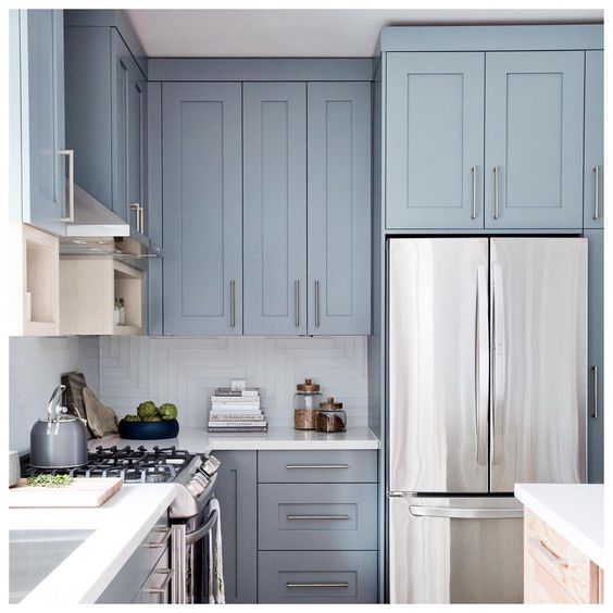 Με μια πρώτη σκέψη, αν βρισκόσουν μπροστά σε μια κουζίνα με λευκούς τοίχους και σου ζητούσαν να διαλέξεις ένα χρώμα, πιθανότατα δε θα επέλεγες το μπλε.