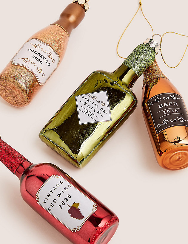 Γυάλινες μπάλες σε σχήμα φιάλης κρασιού σε σετ των 4, Marks&Spencer