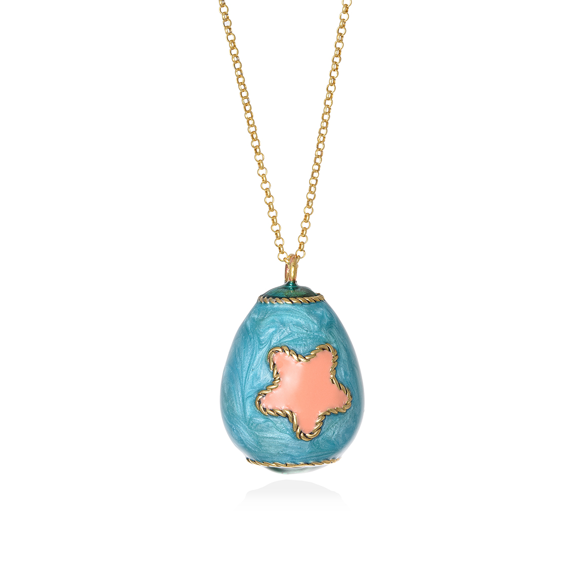Mενταγιόν από μπρούτζο, επιχρυσωμένο με χρυσό 18Κ και επισμαλτωμένο. με πασχαλινό αυγό, Μουσείο Κυκλαδικής Τέχνης