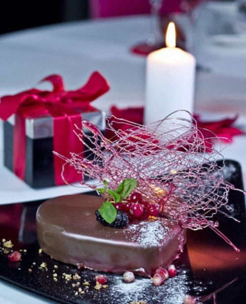 Καρδιά σοκολάτας Valrhona Καραϊβικής με σάλτσα framboise