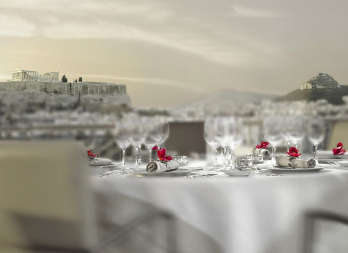 Στο «Le Grand Balcon» στον τελευταίο όροφο του ξενοδοχείου με την πανοραμική θέα στην Ακρόπολη και το Λυκαβηττό, ο Executive chef Βασίλης Μήλιος έχει δημιουργήσει ένα gourmet μενού ειδικά για love birds:
