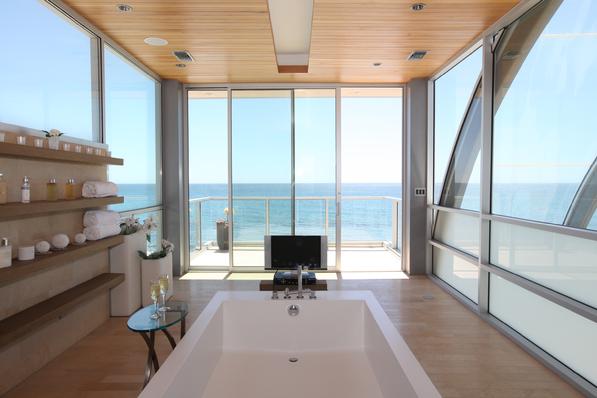 Το παραλιακό σπίτι τριών επιπέδων διαθέτει κάμαρες και μπαλκόνια από γυαλί, κουζίνα με μοναδικά εξελιγμένες συσκευές, ένα wetbar, ένα κελάρι κρασιών, ένα γκαράζ δύο-αυτοκινήτων, ένα τραπέζι μπιλιάρδου και πολλά πολλά ακόμη εκπληκτικά χαρακτηριστικά.