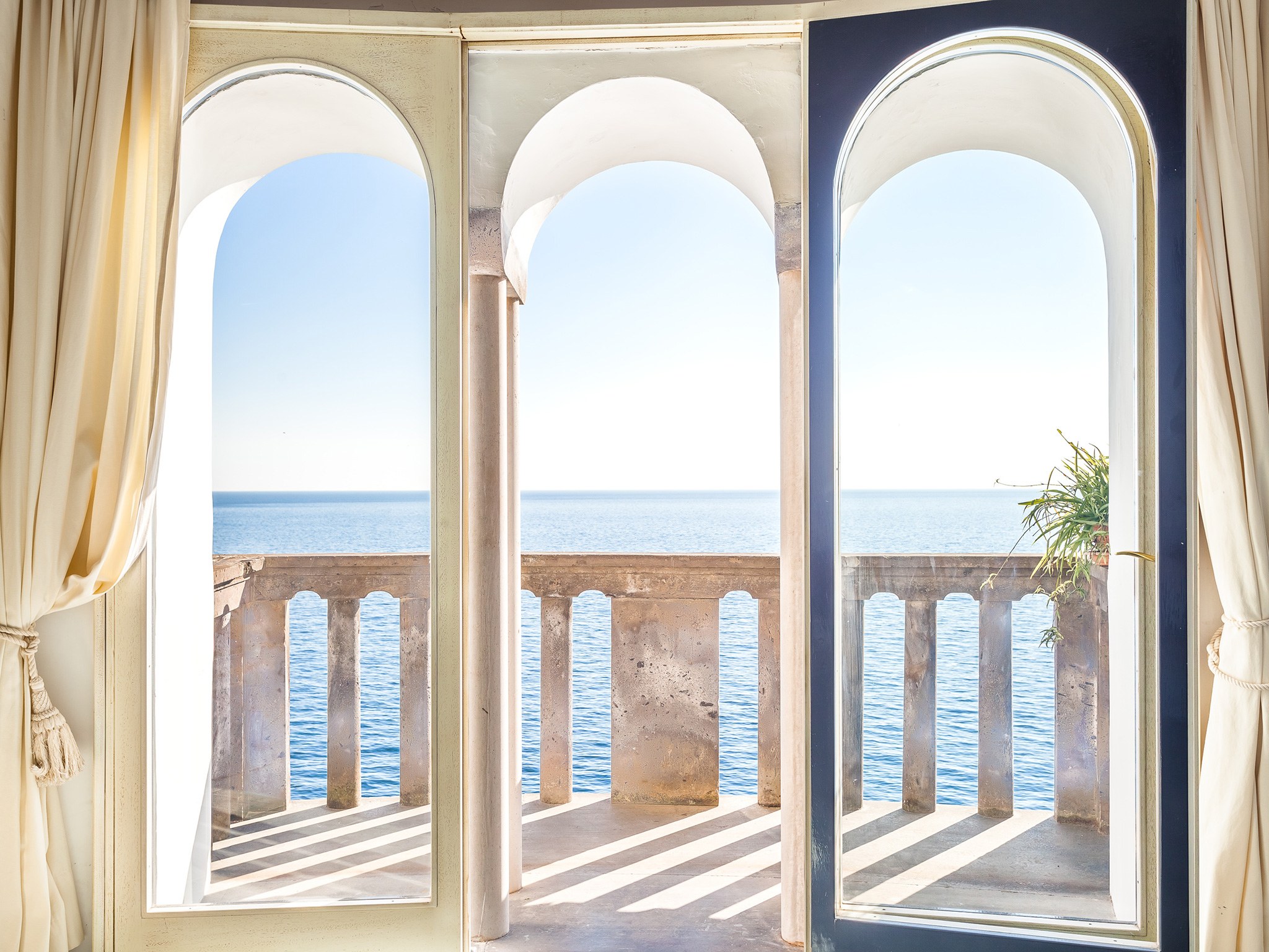 Αυτό το αρχοντικό τριών υπνοδωματίων, που βρίσκεται ακριβώς πάνω στην ακτή Αμάλφι, προσφέρει πανοραμική θέα στη θάλασσα από τον κυκλικό πύργο και τη βεράντα που είναι στολισμένη με μπλε πλακάκια.
