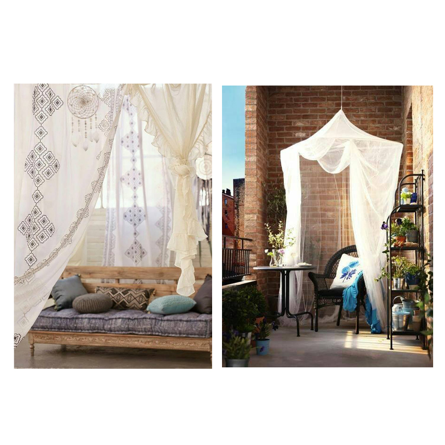 «Ναι, πράγματι τα κουνούπια ενδεχομένως να είναι ένα από τα βασικά μειονεκτήματα του καλοκαιριού. Ωστόσο δεν χρειάζεται να γεμίσεις τον χώρο σου με σιτρονέλλες και αντικουνουπικά για να οχυρωθείς απέναντι στα ενοχλητικά πετούμενα. Διακόσμησε το μπαλκόνι σου με μία τούλινη κουνουπιέρα. Πέρα του ότι θα επιτρέπει στον αέρα να κυκλοφορεί, εμποδίζοντας κάθε άλλη παρουσία, η κουνουπιέρα θα προσδώσει ακόμα πιο ρετρό αέρα στο χώρο και φυσικά θα προσφέρει την απαραίτητη σκίαση για την μεσημεριανή σου σιέστα».