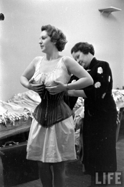 Σε μια από τις πρώτες δουλειές του για το περιοδικό LIFE ο φωτογράφος Alfred Eisenstaedt βρίσκεται στα backstage μιας επίδειξης εσωρούχων. Και ενώ κατά την δεκαετία του 1920 οι γυναίκες έμοιαζαν να έχουν απαλλαγεί για τα καλά από τον ζυγό του κορσέ, εκείνος έκανε μια σύντομη επιστροφή από τα τέλη της δεκαετίας του 1940 μέχρι και την δεκαετία του 1950 όπου το New Look του Dior αναβίωσε την προπολεμική γυναικεία σιλουέτα.