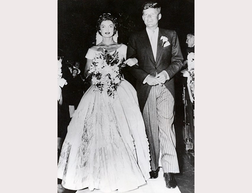 Το ογκώδες ιβουάρ, από μεταξωτό ταφτά, νυφικό της πρώην 'Πρώτης Κυρίας' Jackie Kennedy, σχεδιασμένο από την Ann Lowe έχει περάσει και αυτό με τη σειρά του στην ιστορία με τα πιο εντυπωσιακά φορέματα. Η λεπτή της μέση τονιζόταν χάρη στο καλοσχεδιασμένο νυφικό, ενώ το δαντελένιο βέλο, κειμήλιο από τη γιαγιά της, ήταν η λεπτομέρεια που έδωσε μια πινελιά ρομαντισμού στο ήδη κομψό νυφικό.
