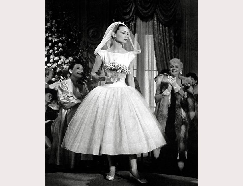 Και στην κινηματογραφική της ζωή η Audrey Hepburn αφήνει εποχή με τις δημιουργίες που φόρεσε. Συγκεκριμένα στην ταινία 'Funny Face' υποδύεται ένα μοντέλο που πρέπει να φορέσει νυφικό. Η κλασική ομορφιά αποτυπώθηκε με τον καλύτερο τρόπο στο στενό bodice με την tea-lenghth φούστα, όλα σχεδιασμένα από τον Givenchy.