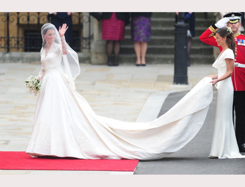 Το νυφικό της δούκισσας του Cambridge δε θα μπορούσε να λείπει από τη λίστα. Η Kate Middleton εμπιστεύτηκε το ταλέντο της σχεδιάστριας Sarah Burton, creative director στον οίκο Alexander Mcqueen για την ιδιαίτερη αυτή στιγμή. Το φόρεμα βικτωριανού στυλ δημιουργήθηκε από δαντέλα, σατέν, τούλι, οργάντζα και άλλα υλικά προερχόμενα από τη Μ. Βρετανία. Το χειροποίητο νυφικό αναδείκνυε με τον καλύτερο τρόπο τη λεπτεπίλεπτη φιγούρα της Middleton κι έκτοτε έχει αντιγραφεί ουκ ολίγες φορές. Λέγεται μάλιστα ότι έμπνευση για τη δημιουργία αποτέλεσε το αντίστοιχο φόρεμα της Grace Kelly. Τέλος, το ακριβοθώρητο φόρεμα,υπήρξε μέρος της ετήσιας έκθεσης του Παλατιού του Buckingham για το διάστημα από τον Ιούλιο του 2011 μέχρι τον Οκτώβριο της ίδιας χρονιάς. Η επισκεψιμότητα, ξεπέρασε τα 600.000 εισιτήρια, χτίζοντας ακόμα περισσότερο το μύθο του.