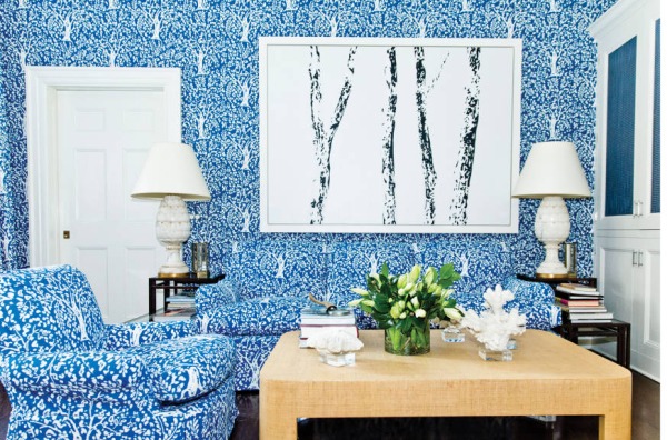 «Αυτός ο χώρος έγινε γνωστός ως το μπλε δωμάτιο στο διαμέρισμά μου στη Νέα Υόρκη. Λατρεύω την ταπετσαρία του Billy Baldwin εμπνευσμένη από τον Matisse, έναν από τους αγαπημένους μου καλλιτέχνες».