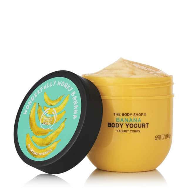 Το special edition Banana Body Yogurt απλώνεται εύκολα και προσφέρει στην επιδερμίδα σου 48ωρη ενυδάτωση. (The Body Shop)