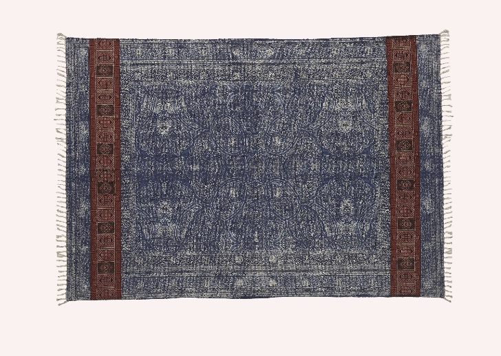 Από 100% βαμβάκι το Φιλήμων Blue Ethnic χαλί θα δημιουργήσει μια ατμόσφαιρα οικεία και ζεστή. Cocomat