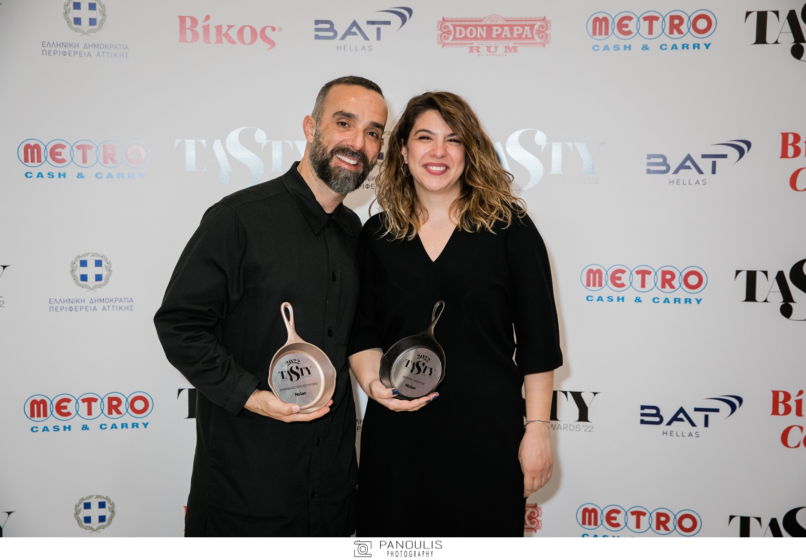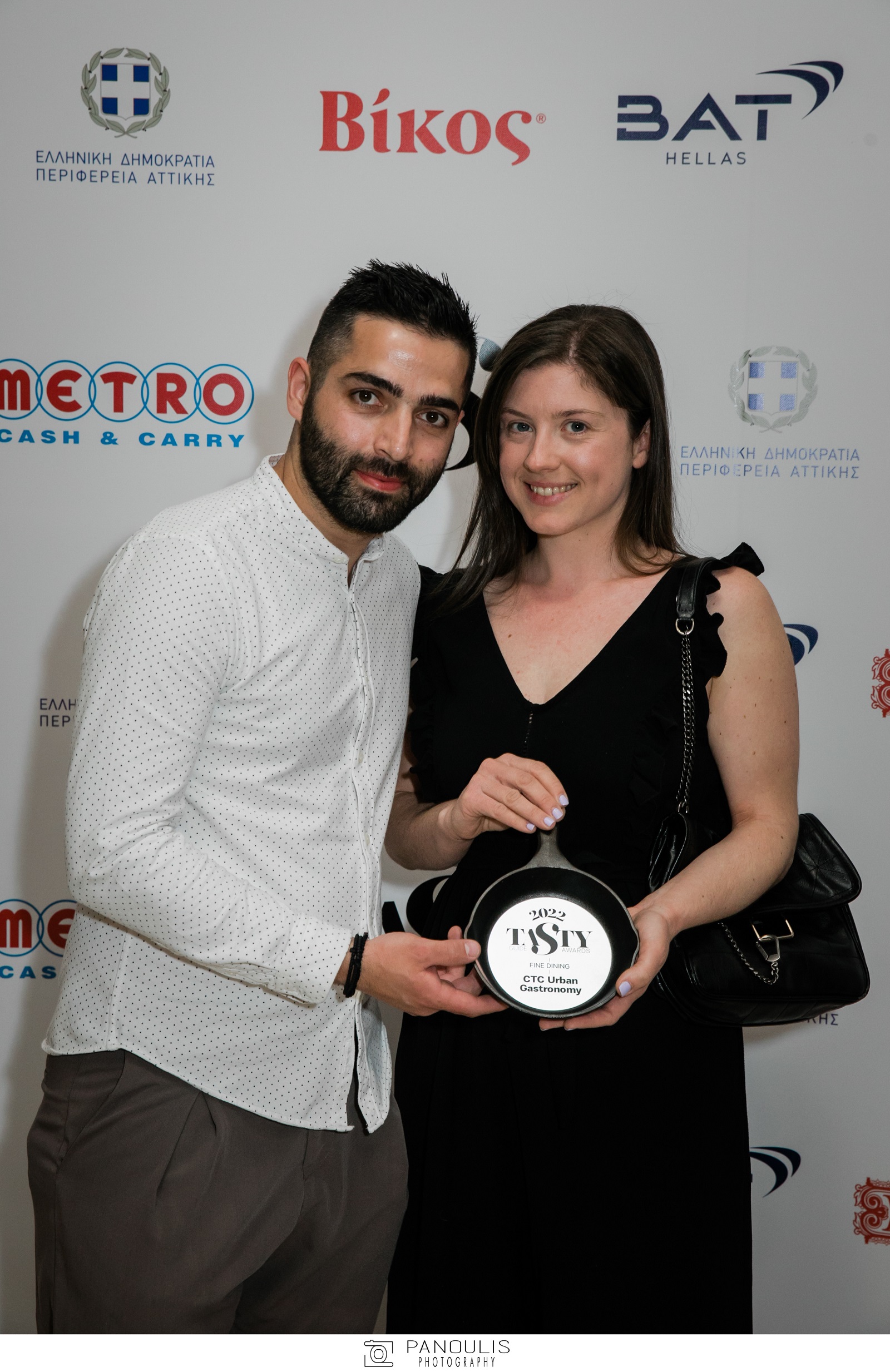 Χρήστος Ρήγας και Ίβα Ντίλο, με το βραβείο της κατηγορίας Fine Dining για το εστιατόριο CTC Urban Gastronomy