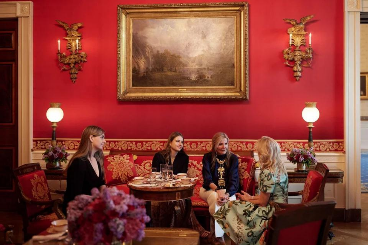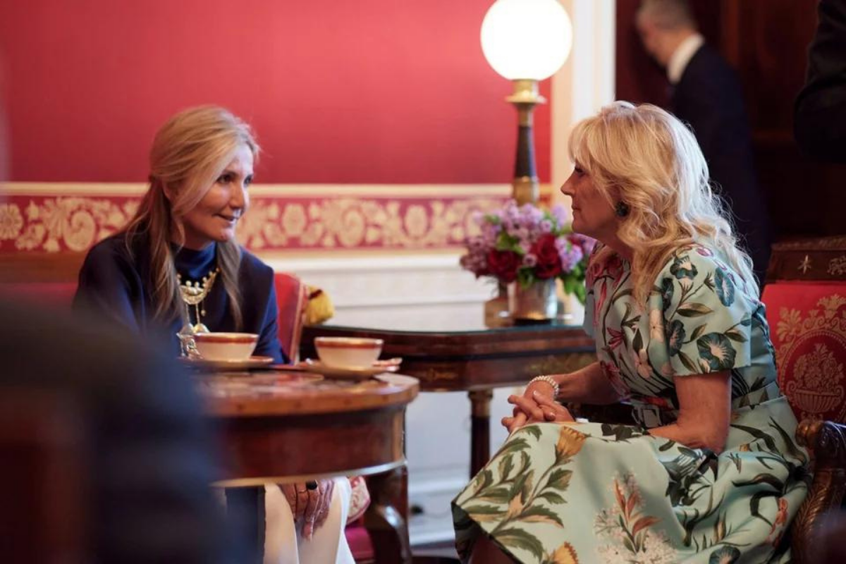 Τη στιγμή, λοιπόν, που ο Κυριάκος Μητσοτάκης βρισκόταν στη σημαντική συνάντηση με τον Πρόεδρο των ΗΠΑ, μιλώντας για τα φλέγοντα ζητήματα της επικαιρότητας, η σύζυγός του, Μαρέβα, συνοδευόμενη από τις κόρες της, έλαβε φιλόξενη υποδοχή από την Jill Biden.